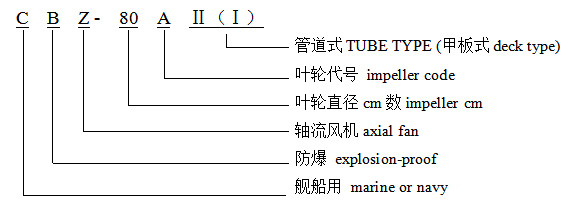 The CBZ Series Explosion-proof Axial Flow Ventilators for Ships and Vessels (hereinafter referred to as "explosion-proof ventilators") are designed and manufactured in accordance with the relevant provisions of GB 11800-2008 Explosion-proof Axial Flow Ventilators for Ships and Vessels, GB 3836.1-2000 Explosive Atmospheres - Explosion-proof Electrical Equipment for Explosive Atmospheres - Part 1: General Requirements, GB 3836.2-2000 Explosive Atmospheres - Explosion-proof Electrical Equipment for Explosive Atmospheres - Flameproof Enclosures "d", as well as the current relevant provisions of Rules for the Classification and Construction of Steel Sea-going Ships issued by the China Classification Society.